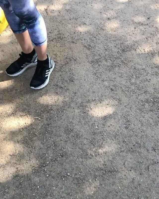 We run, with bags while picking up trash!